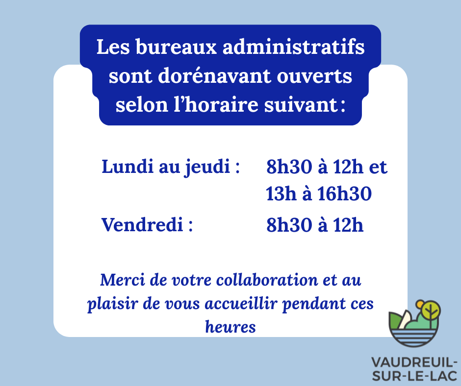 Dès le 1er décembre 2025, les bureaux administratifs seront ouverts selon l’horaire suivant :